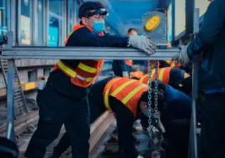 - 地铁检修员用小型龙门吊搬出旧轨道...